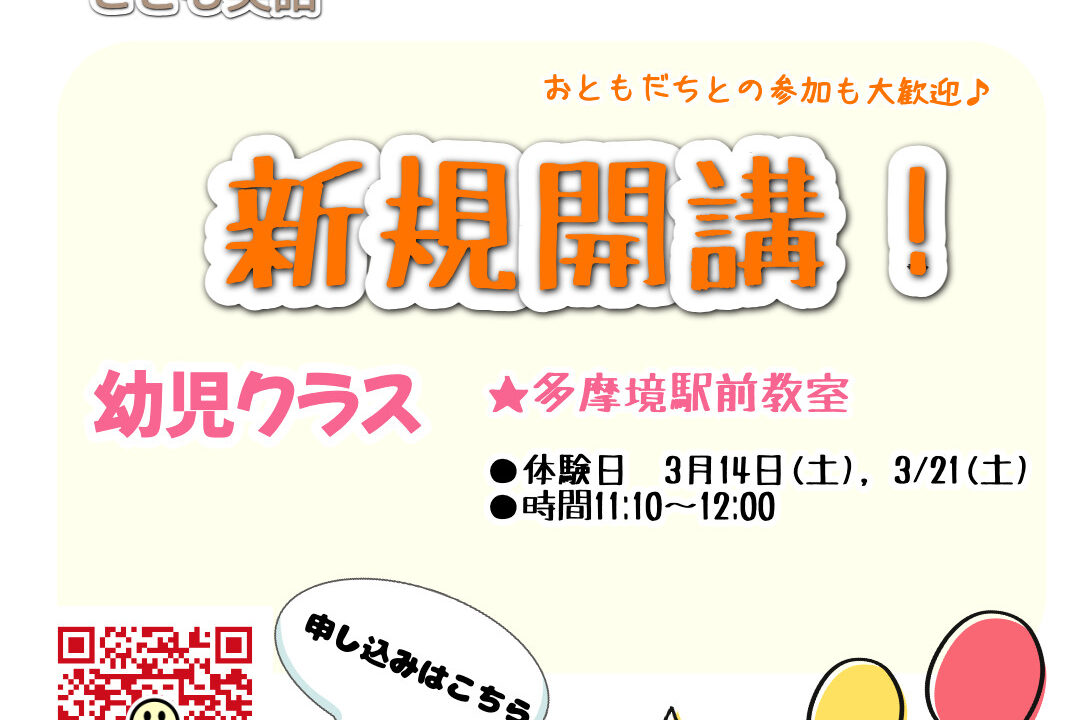 多摩境駅前教室で、幼児さんクラスを新規開講予定です!